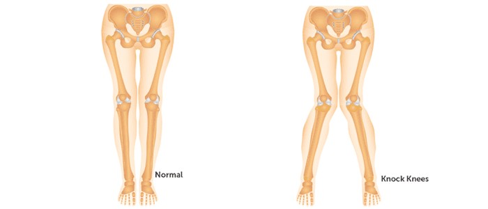 - نزدیک شدن زانوها: زانوها به هم چسبیده و فاصله بین مچ پاها زیاد میشود.